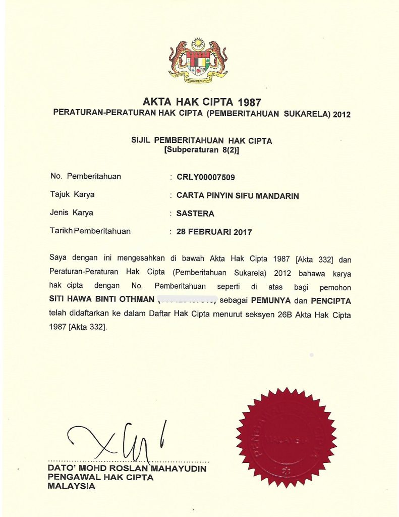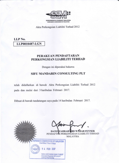 SIJIL IPO BUKU - BUKU SIFU MANDARIN