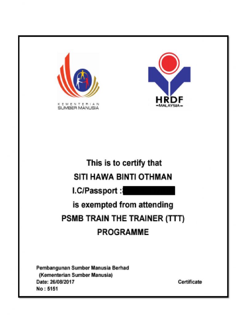 SIJIL JURULATIH PMSB (CERTIFIED TRAINER)
