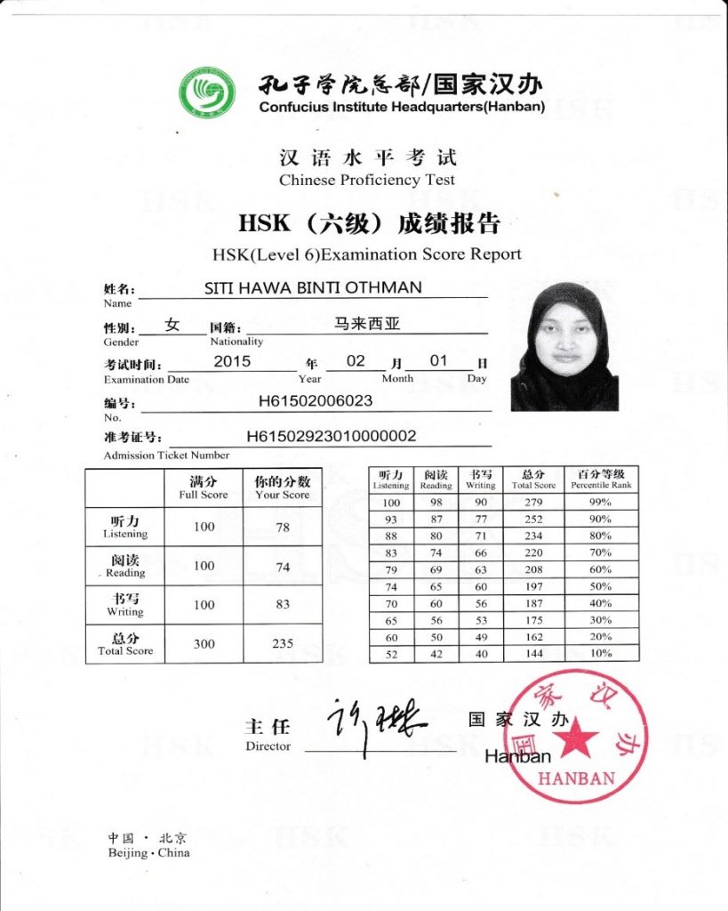 Sijil Kefasihan Bahasa Mandarin (HSK) daripada Hanban, Beijing, China