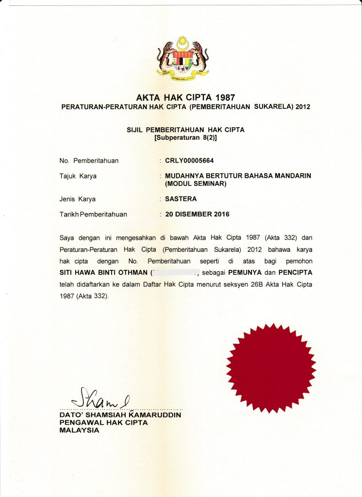 þModul dicipta khas oleh Guru Pembimbing Sifu Mandarin, Hawa Laoshi
