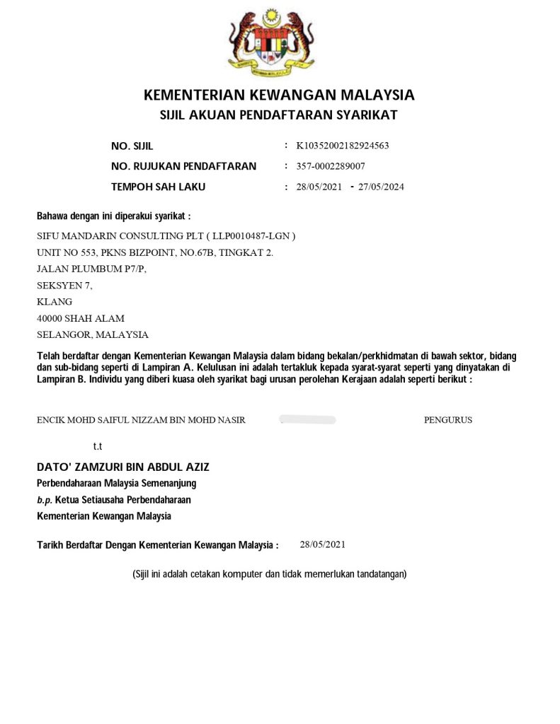Syarikat SIFU MANDARIN CONSULTING PLT mempunyai 10 cawangan di seluruh Malaysia menjelang 31 Disember 2025